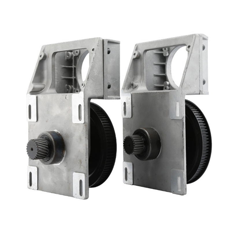 Gearbox with helical toothed racks and helical pinion. This gearbox has a 5:1 ratio and there is no free clearance / backslash. Helical teeth on the rack allow fast movement and quiet long-term operation without vibrations.